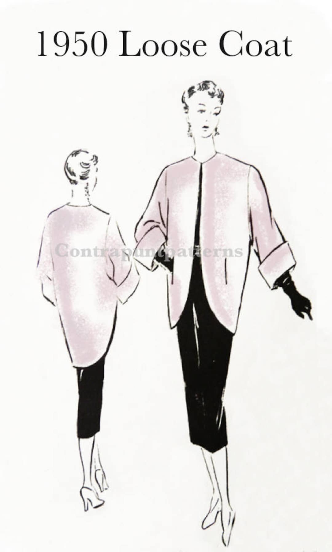1950s Loose Coat Pdf Sewing Pattern Adapted To Modern Needs Etsy Osterreich
